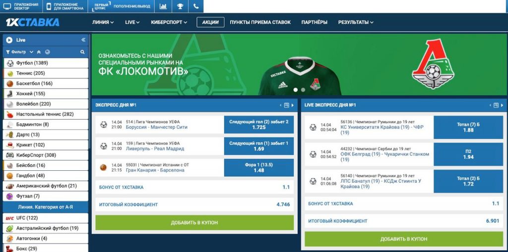 На официальном сайте 1xBet рассчитываются следующие типы ставок: