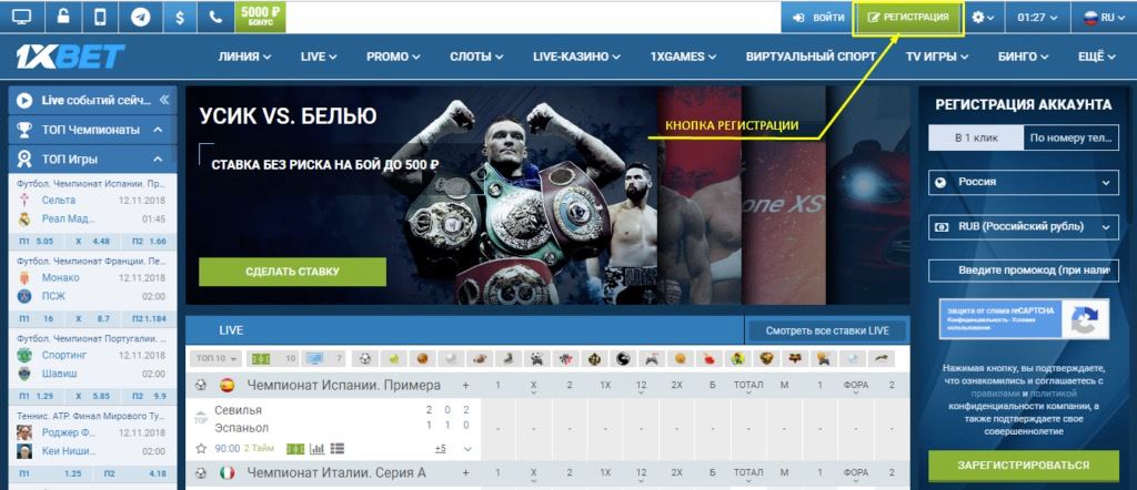 Регистрация на сайте 1хбет доступна по любой из четырёх вкладок на выбор: